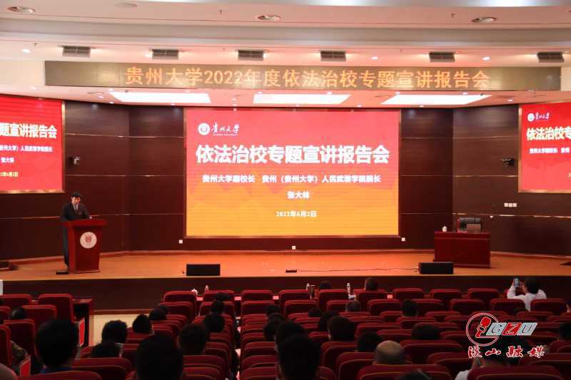 为进一步学习宣传贯彻习近平法治思想,全面推进依法治校、依法办学,形成全校师生尊法、学法、守法、用法的良好风气,6月2日下午,贵州大学2022年度依法治校专题宣讲报告会暨习近平法治思想专题宣讲会在西区贤正楼107报告厅成功举行。“依法治校专题宣讲报告会”由贵州大学副校长、人民武装学院院长张大林主讲,“习近平法治思想专题宣讲会”由贵州师范学院马克思主义学院院长金凤主讲。