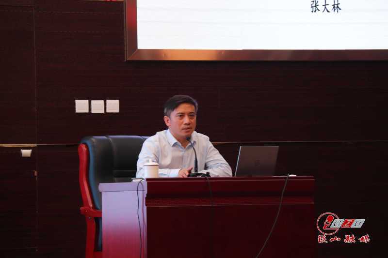 张大林以《深学笃用习近平法治思想,开创依法治校工作新局面》为题,分别讲述了法律的起源发展和相关法律知识、党领导法治建设的历史进程、习近平法治思想与教育重要论述对照学习与认识以及我校依法治校工作成果进行展示与工作反思四部分内容。
